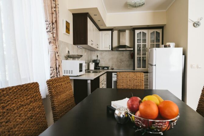 Для комфортного проживания имеется полностью оснащенная бытовой техникой кухня, ванная со всеми принадлежностями и стиральная машина.