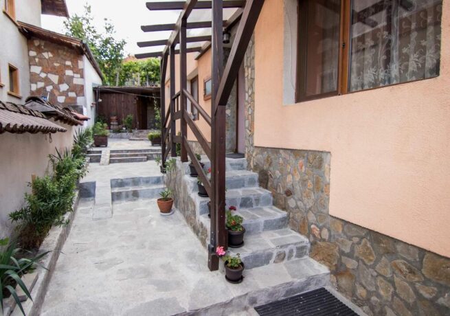 Небольшой, но очень уютный гостевой дом расположился в 7 километрах от города Банско и одноименного лыжного подъемника, что очень удобно для приезжающих сюда спортсменов. Оборудование для катания здесь можно взять в аренду и приобрести ски — пассы со скидкой для проживающих гостей. Если вы приехали на автомобиле, то имеется бесплатная парковка на частной территории.
