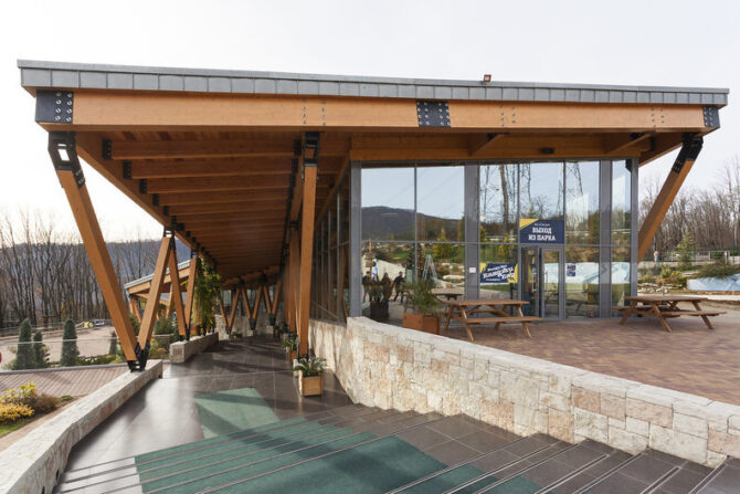 Здания парка представляют собой настоящие архитектурные произведения, все они выполнены по самым современным технологиям: