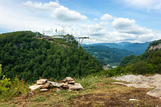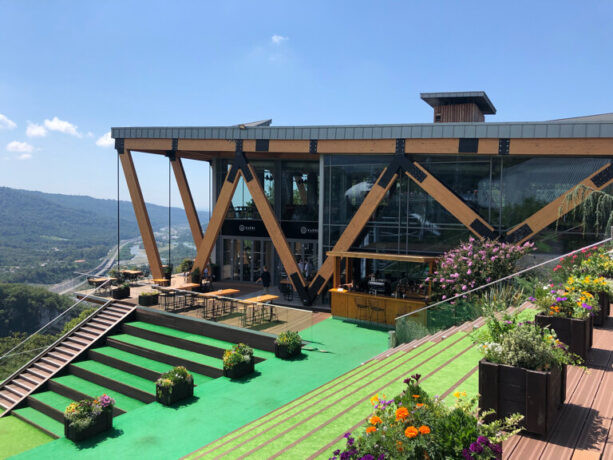 Парк с ухоженной пешеходной зоной прекрасно обустроен и имеет множество красивых фотозон. С территории Скайпарка вы сможете любоваться близлежащими горными вершинами и хребтами Адлера, форелевым хозяйством, Артышским ущельем, побережьем Черного моря и другими местами.