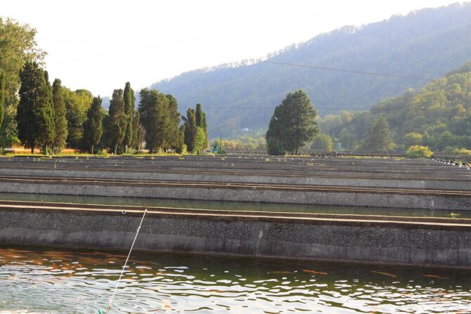 Тем, кто не представляет отдых без рыбалки, будет полезно посетить это форелевое хозяйство Адлера. Находится оно в 10-15 минутах езды от аэропорта Адлера. В форелевом хозяйстве можно не только полюбоваться плещущимися в воде рыбками. Во время экскурсии можно половить форель и съесть жареную форель. А мастер-класс по приготовлению форели сделает экскурсию еще более увлекательной.