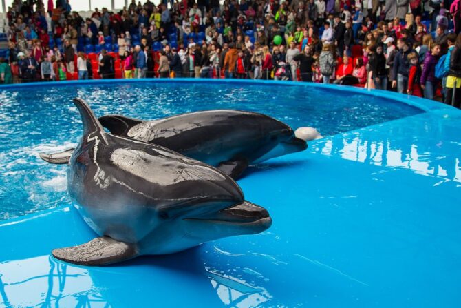 Несколько раз в день в центре Адлеровского Океанариума проходят яркие шоу. Маленьких гостей развлекают морской царь Посейдон, прекрасная Русалка и ловкий Ихтиандр. А с 14:00 до 15:00 можно наблюдать за кормлением акул. В конце шоу дайвер обнимает большую белую акулу и уплывает.