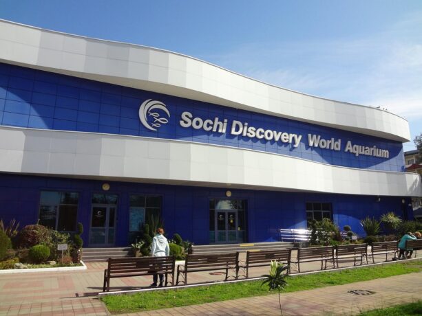В холле Сочинского океанариума всегда прохладно, такая атмосфера позволяет отдохнуть от летнего зноя. Есть также игровые автоматы, которые позволяют развлечься, пока туристы ждут своей очереди. Но самое интересное, конечно, внутри комплекса, занимающего огромную площадь: