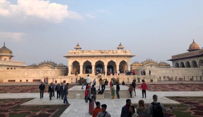 Короткая справка: сооружение воздвигнуто в XVI веке при императоре Акбаре, позже достраивалось и украшалось при Джахангира и Шах-Джахане. Внутри – сочетание защитных укреплений и изящных палат: армейские бастионы соседствуют с беломраморными залами и спокойными садами. Здесь можно увидеть места, откуда открывается вид на Тадж-Махал – очень фотогенично, особенно на закате.