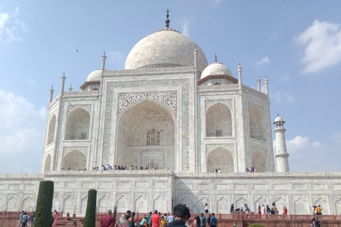 Построенный в XVII веке императором Шах-Джаханом в память о любимой жене Мумтаз-Махал, мавзолей служит и гробницей, и символом вечной любви. Его архитектура — вершина могольского стиля: симметрия, минареты, каллиграфия из корана и полудрагоценная мозаика создают ощущение продуманности до мелочей.