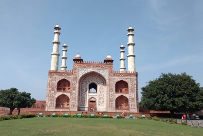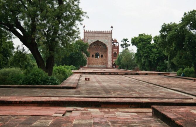 Это место — отличный контраст к шуму и блеску Тадж-Махала: спокойный парк, массивные ворота из красного песчаника и изящные беломраморные вставки, которые помогают почувствовать масштаб и вкусы великого императора эпохи Моголов. Уникальность здесь в том, как архитектура сочетает исламские мотивы с индийскими ремёслами, а сам ансамбль выглядит «земным», не помпезным, словно памятник, созданный для размышлений, а не для шоу.