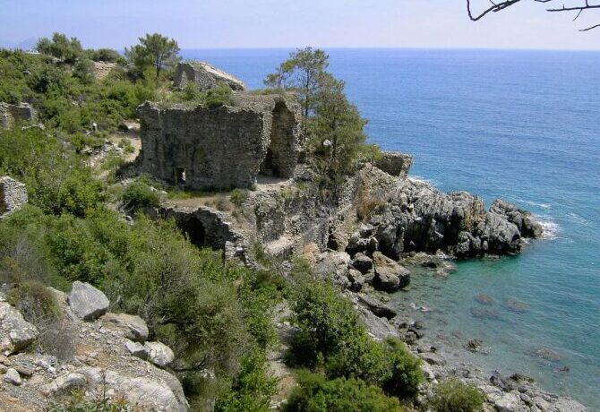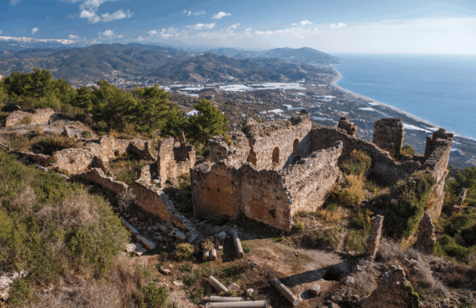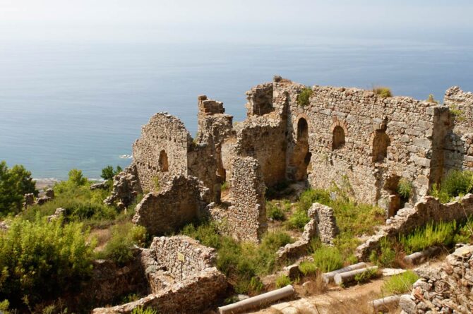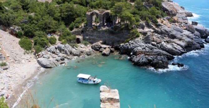 Один из древних городов Аланьи, находящийся в его юго-восточных окрестностях. Античный город был возведён в честь супруги сирийского царя Антиоха IV Эпифана. Регулярные сражения в этой местности приводили к падению одних царств и процветанию новых. Таким образом Айтап стал частью сирийской провинции Рима, что произошло в I в. В те времена он был прогрессивным ремесленным центром. Местные жители почитали бога Апполона и возвели в почёт ему целый храм, руины которого можно увидеть в наши дни. Помимо всего прочего до современности дошли остатки лестниц, статуй и булыжных улиц. Также остались некоторые части некрополя, который находился немного выше Айтапа. Интересно увидеть систему водоснабжения и канализации древнего поселения. Руины Айтапа труднодоступны, однако наградой за восхождения к ним будут шикарные виды окрестностей и моря.