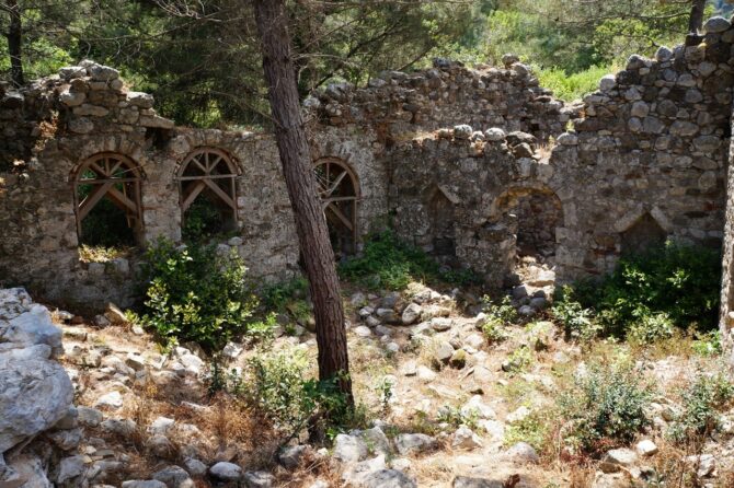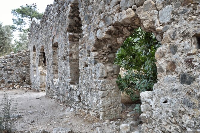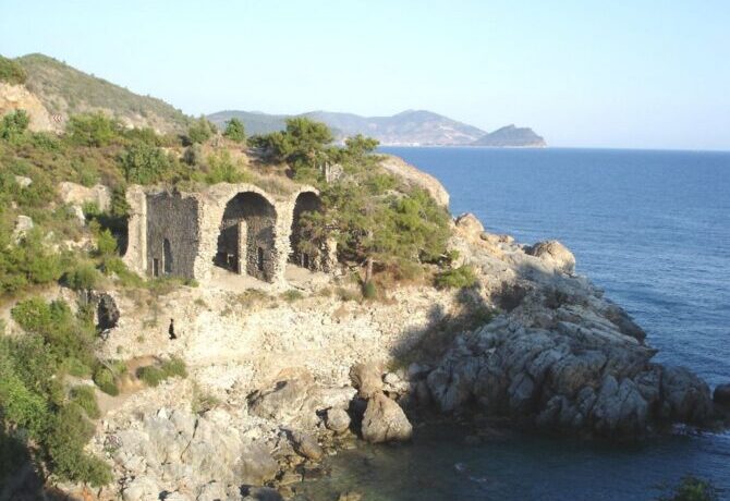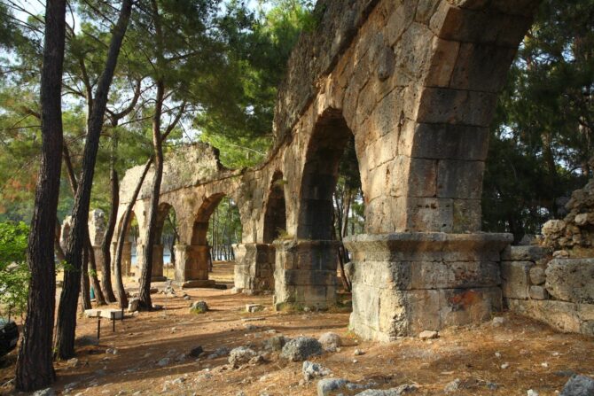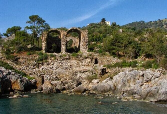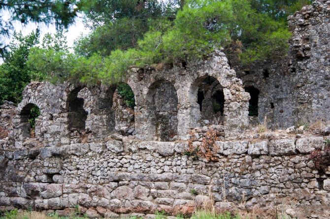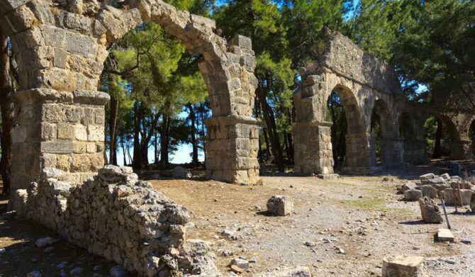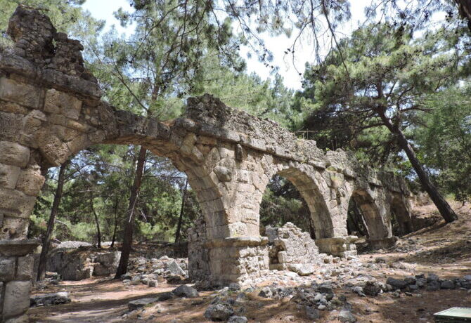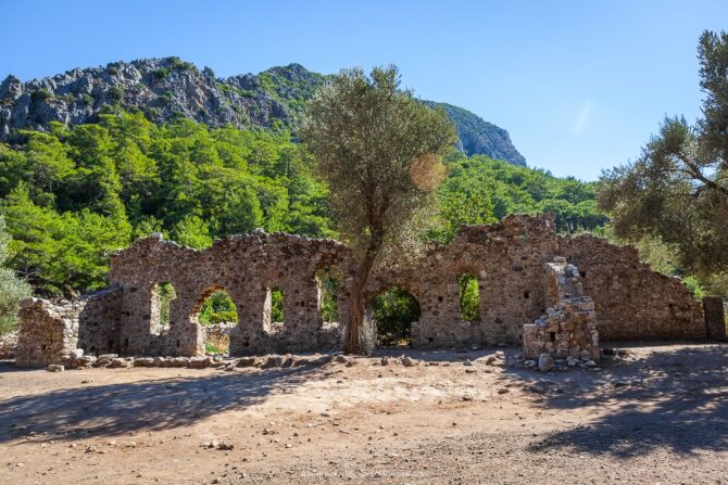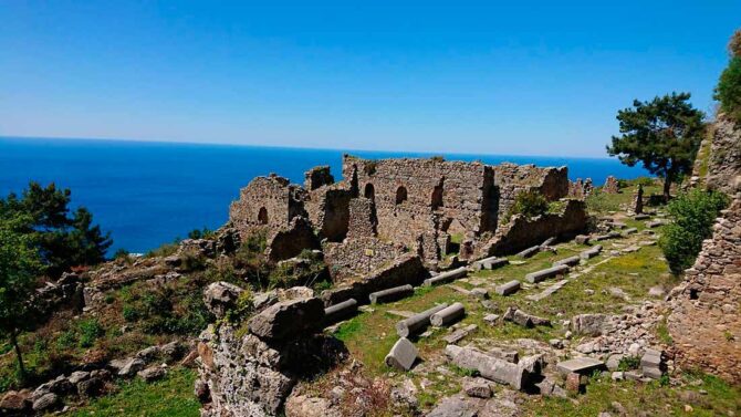Развалины можно обнаружить неподалёку от села Чиралы. Древний город буквально утопает в зелени, что делает его таинственным и невероятно живописным. До нас Олимпос практически не сохранился и относительно прочих памятников Аланьи почти не ухожен, однако это делает его нетривиальным. Он будто специально создан для любителей тайн и древности: старое русло реки, руины древнего форта, колоннада и руины многовекового театра.