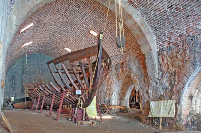 Одно из знаковых мест города. Находятся она неподалёку от моря. В наше время верфь служит как причал для небольших судов местных жителей. История верфи начинается с 1228 года. Она была выставлена по приказу султана Ала ад-Дина Кей-Кубада I. Верфь обладает внушительными размерами, занимая площадь порядка 2400 кв. м. Во времена правления султана здесь ремонтировали и строили судна для его флота. Выгодное местоположения скрывало верфь от вражеских глаз.