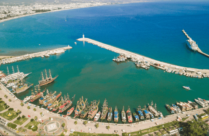 Порт Аланьи расположен в одной из самых красивых средиземноморских гаваней. Неподалёку от него можно увидеть старинный замок города. Оригинальность и самобытность порту добавляют архитектурные и исторические достопримечательности. Морские променады на пароходах начинаются именно здесь, а по окончании оставляют неизгладимые впечатления. Морские прогулки предоставляются различными компаниями Аланьи, способные предложить гида, говорящего на нескольких языках. Популярна и комфортабельная набережная порта. Непременно стоит продегустировать блюда из морепродуктов гастрономических заведений, находящихся близ пристани. Здесь же находятся лавчонки и магазинчики с сувенирной продукцией.