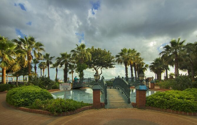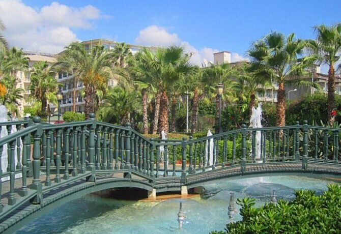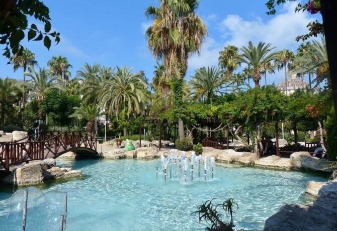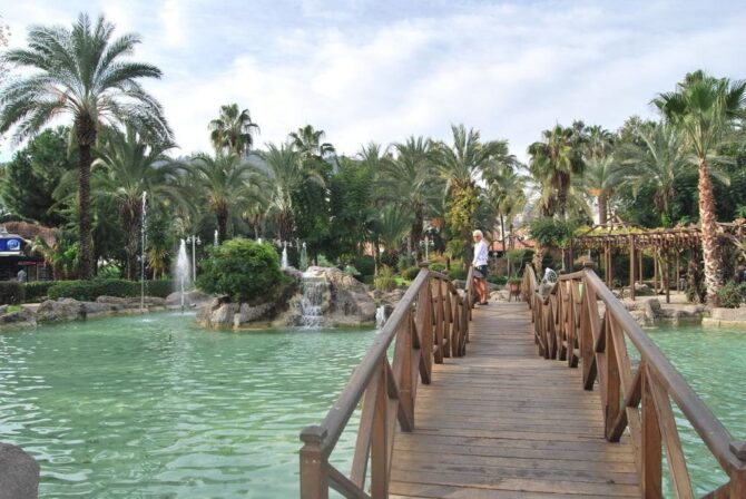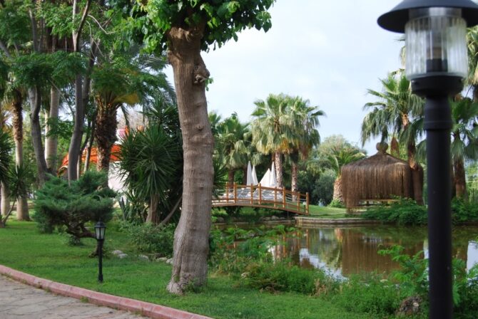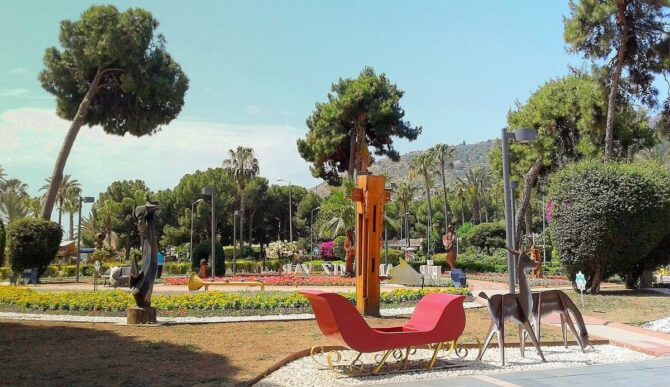 Это самый масштабный парк Аланьи и наиболее комфортный для променадов. Расположен он неподалёку от пляжа Клеопатры, так что после жаркого пляжного отдыха можно укрыться в лёгкой прохладе под пальмами. А ещё стоит прогуляться по многочисленным мостикам, любуясь зеленью, красивыми цветниками, скульптурными композициями и фонтанами. На протяжении всей зоны отдыха выставлены скамьи для отдыха. Для малышей открыты игровые площадки. На окраине парка для любителей активного отдыха выставлены теннисные корты и бесплатный тренажерный комплекс.