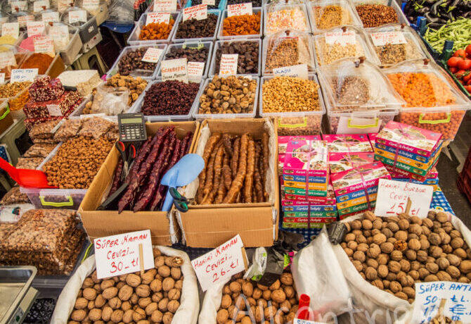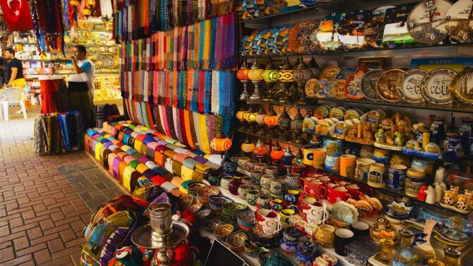 Одно из наиболее посещаемых гостями города мест. Ведь где, как не на рынке можно прочувствовать атмосферу турецкой жизни, а заодно и приобрести памятные сувениры для себя и близких. Рынок укрылся за мэрией Аланьи прямо в центре города. С самого раннего утра здесь появляются прилавки, где можно прикупить наисвежайшие овощи, фрукты или турецкие сладости. Но основная «рыночная жизнь» кипит в больших торговых палатах на торговой площади. Важно знать, что на турецких базарчиках обязательно надо торговаться, поскольку это местная традиция и своеобразная игра. А ещё в самых отдалённых частях базара цены будут намного ниже, чем в первых или центральных рядах.
