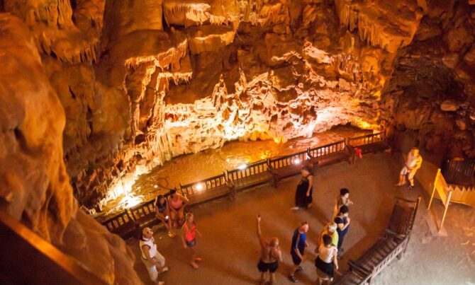 Пещеру можно найти буквально на территории Аланьи приблизительно в 100 метрах от средиземноморского побережья. Пещеру нашли в 40-е годы прошлого века в ходе проведения работ по сооружению порта. Некогда на этой территории размещалась каменоломня. Вход в подземелье весьма удобный. Близ него расположен пляж и небольшой базарчик. Пещера не впечатляет своих посетителей огромными размерами, поскольку увидеть можно только одно помещение. Однако тут можно полюбоваться сталактитами и сталагмитами дивных форм.