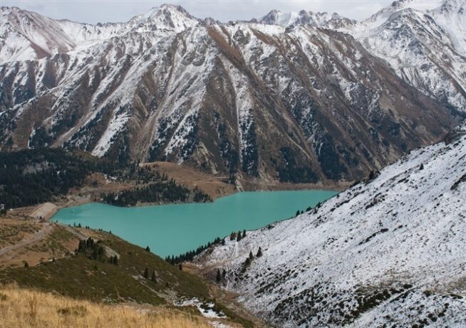Как добраться: Озеро находится в горах примерно в 15–25 км от центра города, на высоте около 2510 м. Самый простой вариант — на машине или такси через Талгарское ущелье, учтите пограничный пост и парковку у въезда. Есть маршрутки и экскурсии от города, но они редко заходят прямо к воде, придётся пройти пешком от стоянки. Зимой дорога может быть закрыта, уточняйте условия перед выездом.