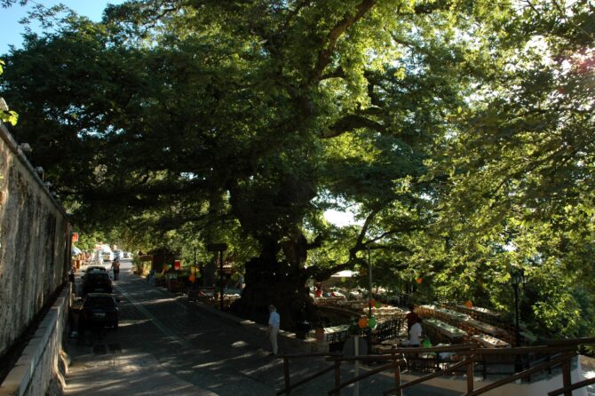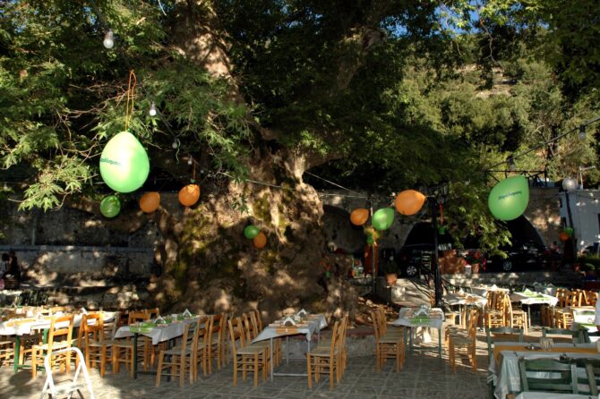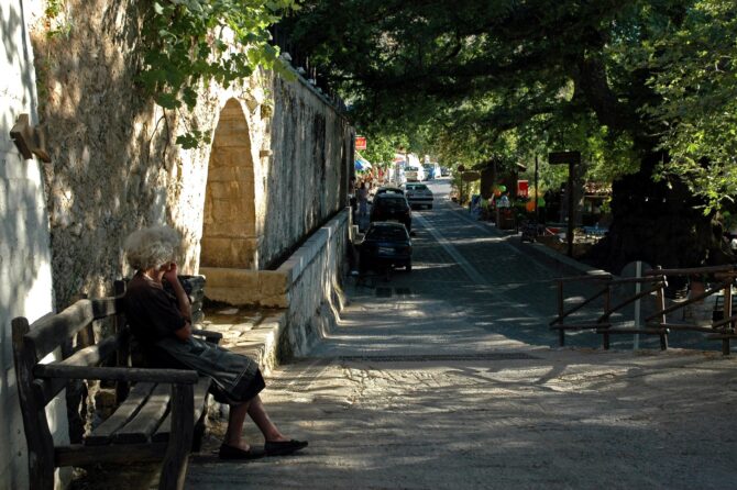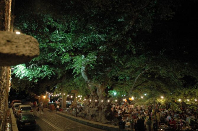 Продолжая путешествие на запад от Ираклиона, дорога обязательно приведет к подножию горы Селена. Здесь расположена небольшая деревушка Краси, в которой растет платан охватом 20 метров и возрастом в 2 тысячи лет. На окраине деревни находится каменный резервуар для воды, возведённый в 1890 году. Это большое прямоугольное строение с тремя арками и специальными отверстиями для поилок животных. Обе достопримечательности соединяет одна улица.
