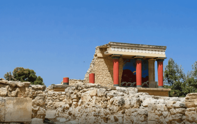 Самый большой из дворцов минойского периода расположен в 4-х км от Ираклиона на территории древнего города Кносс. Билет стоит 15 евро, рекомендуется брать единый билет для посещения Археологического музея и Кносского дворца, который обойдется в 20 евро. Дети до 18 лет пропускаются бесплатно. С этим местом связан один из самых героических и романтических мифов Древней Греции – о лабиринте Минотавра. Действительно, планировка дворца до такой степени запутана, что чужестранец мог легко заблудиться в нескончаемых коридорах и переходах. Руины неплохо сохранились, но английский ученый Артур Эванс, под руководством которого проводились раскопки, решил не оставлять дворец в том виде, в котором он был найден. Многие постройки были реконструированы с помощью бетона и арматуры. За давностью лет очень сложно определить, где стены минойской эпохи, а где заново возведенные. Но это не умаляет значимости объекта, как исторической достопримечательности. Туристов ждут увлекательные экскурсии по территории памятника архитектуры.