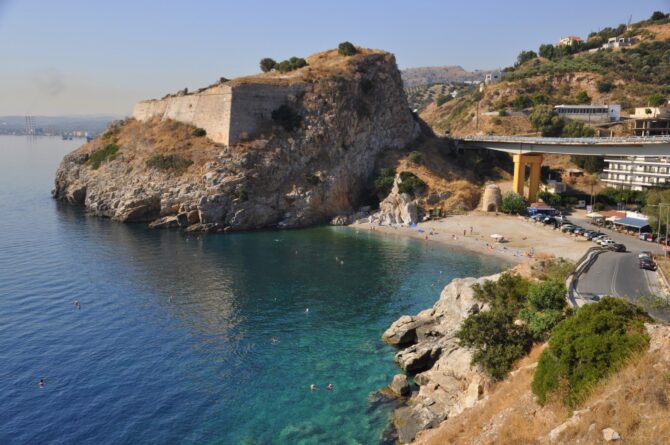 Знакомство с окрестностями стоит начать со столицы Крита Ираклиона. Даже в столь крупном городе можно составить маршрут одного дня, выбрав наиболее интересные объекты. Так как припарковаться в центре города практически невозможно, нужно уехать в порт и оставить автомобиль на платной стоянке. В этом случае первым экскурсионным объектом станет Венецианская гавань. Здесь сохранились доки, построенные в 17 веке. В порту стоят большие круизные лайнеры и частные яхты. Все вместе они представляют живописную картину, подходящую для увлекательной фотосессии. Гавань постепенно сливается с территорией крепости Кулес. Вход 2 евро. Лучше пройтись с гидом и послушать увлекательный рассказ о героическом прошлом цитадели. Крепость является своеобразными воротами в Старый город. На пешеходной улице находятся сувенирные лавки, бутики и рестораны. Из достопримечательностей – церковь Святого Тита (961 год постройки), Венецианская лоджия (17 век), львиный фонтан Морозини.