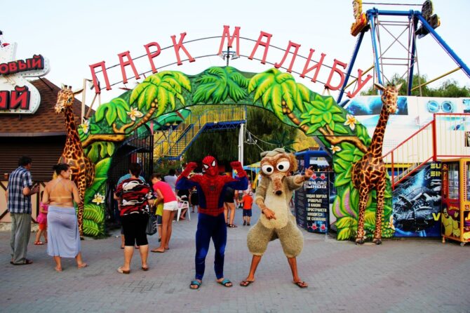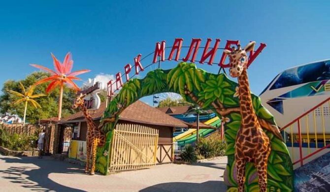 Найти парк можно близ Центрального пляжа Архипо-Осиповки. На огромной территории комплекса, украшенной экзотической зеленью, можно найти развлечения на любой вкус. «Малибу» отличается развитой инфраструктурой: аквапарк, 32-метровое колесо обозрения, зона детских аттракционов, ночные клубы, батуты, экстремальные аттракционы для взрослых, различные гастрономические заведения и магазины, а также кинотеатр 5D.