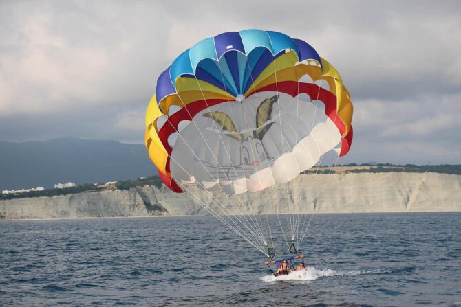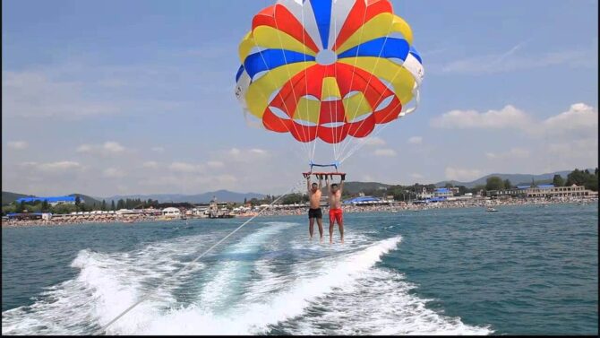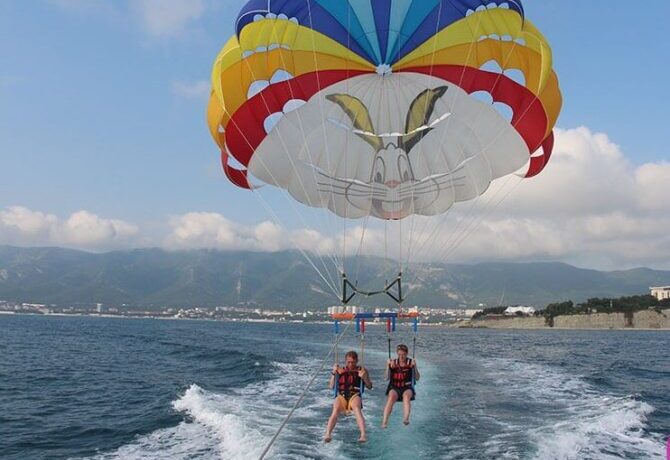 Это полёты с парашютом над морем. В Архипо-Осиповке весьма популярное развлечение, на которое решаются лишь любители адреналина. Перед началом полёта «парашютист» привязывается тросом к катеру. И при помощи специального парашюта «парит» в след за транспортом. Под парашютом может лететь до трёх желающих. Воздушное путешествие длится порядка 10 минут. Все «парашютисты» перед полётом проходят подробный инструктаж и облачаются в спасательный жилет. Развлечение достаточно безопасное, а ощущения от него незабываемы.