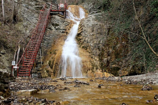 Любой отдыхающий в Архипо-Осиповке непременно должен посетить это место. Находятся водопады в 6 км от «Архипки». Всего водопадов 7, однако, высоких (13, 15 и 16 метров) только 3 – Грот, Пасть Дьявола, и Шнурок. Маленькие водопады, высотой менее 3 м почти не привлекают внимание приезжих. Туристическая тропа к водопадам хорошая и удобная даже для путешественников, не любящих пешие прогулки: с маркировкой, оборудованными пешеходными мостиками, металлическими лестницами с поручнями и стоянками для отдыха. Рядом с водопадами есть шашлычная и кафе, а также сувенирный магазинчик.
