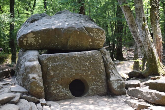 Дольмены – это сооружения из огромных каменных плит, визуально напоминающие невысокие домики с круглым окном. Архипо-Осиповка тоже имеет свои дольмены. Здесь можно найти отдельно стоящие дольмены или группы дольменов. Есть и большое сосредоточие их. Оно насчитывает 50 дольменов на одной территории. Можно найти сооружения с высеченными на них петроглифами. Зачастую это символы солнца, земли, воды и луны. Занимательно то, что дольмены имеют возраст равный возрасту египетских пирамид. Недалеко от дольменов можно найти закусочные, где можно перекусить после путешествия.