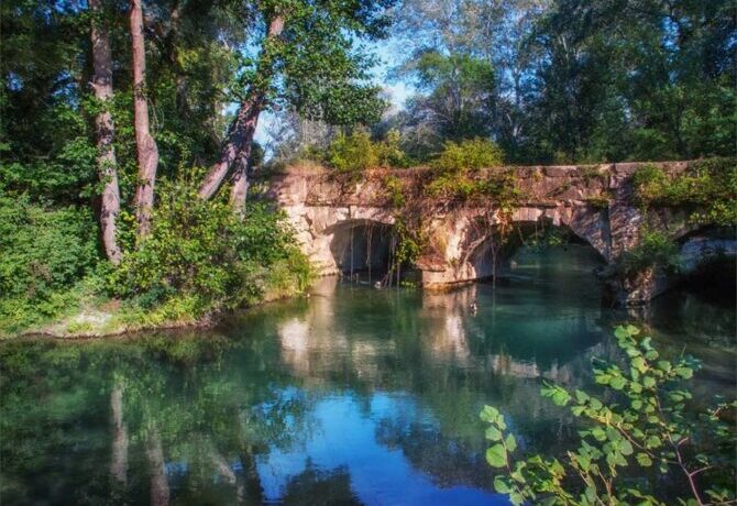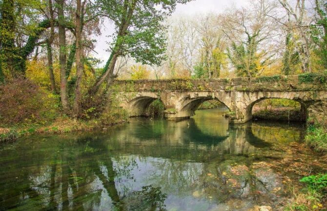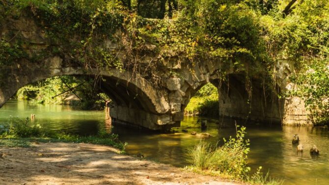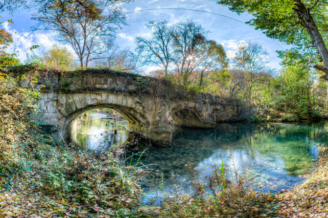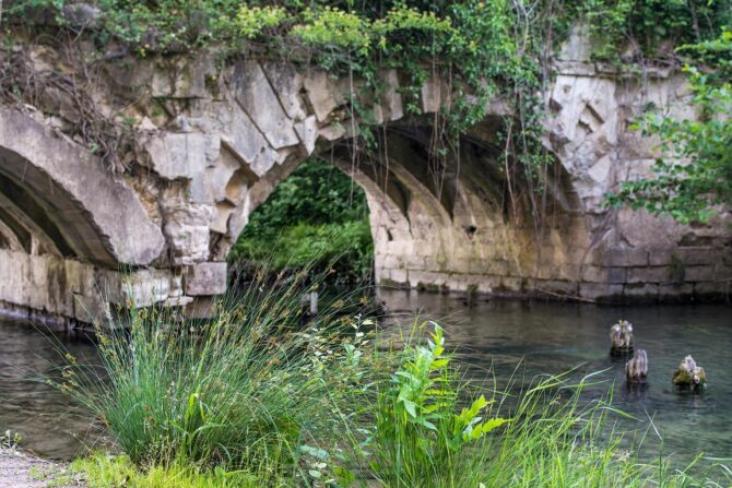 Построен через реку Чёрная в XIX веке по предложению адмирала М.П. Лазарева. Этот мост являлся частью самотечного водопровода. Мост длиной 12 м состоит из трёх арочных пролётов, подражает по своему стилю античности. Этот прекрасный инженерный памятник зодчества построен без фундамента. Мост стоит на дне реки, и при этом он не только отлично сохранился, но и до сих пор может выполнять свою функцию по подаче воды. Мимо моста-акведука нет экскурсий, но необычная красота грубых камней, из которых построен мост, достойна того, чтобы её увидеть. Чоргуньский мост-акведук подарит незабываемое впечатление.