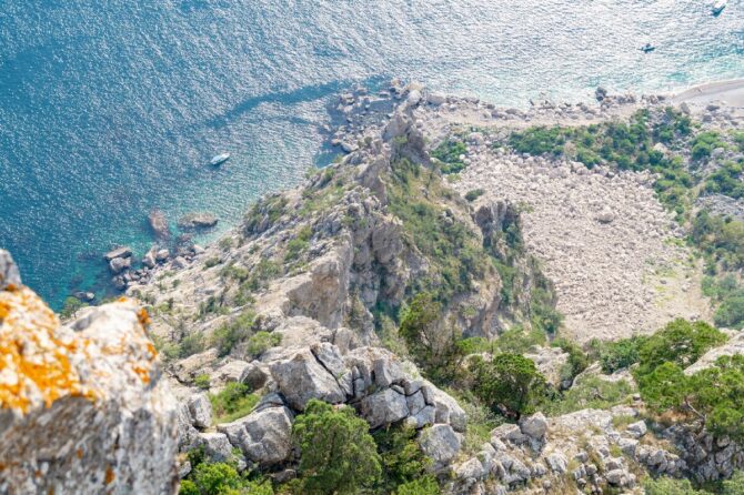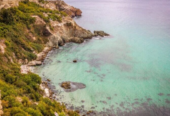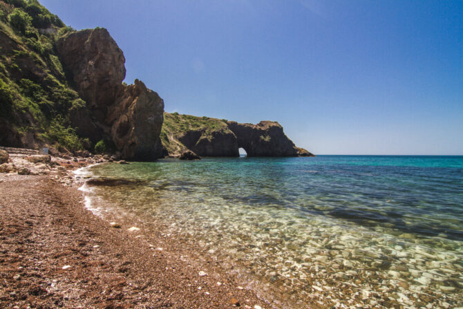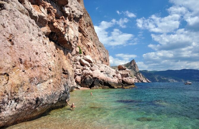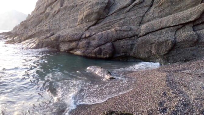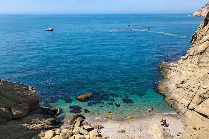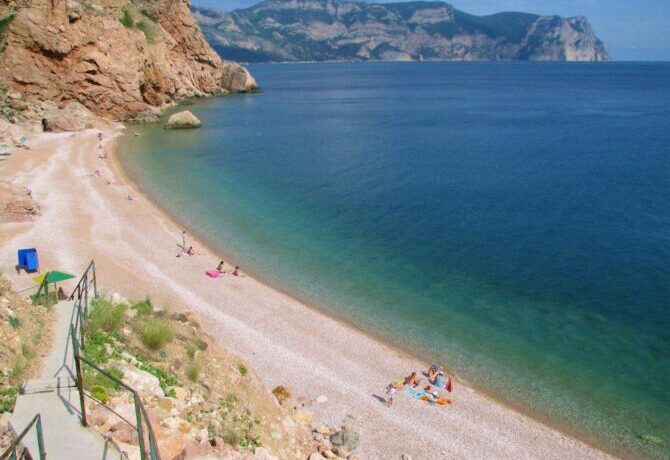Дорога к пляжу занимает 15 минут и проходит по горной извилистой, местами обрывистой тропе до 10-метровой лестницы, по которой надо будет спуститься к морю. Местные жители называют этот пляж ласково — «Шайтанкой». Пляж располагается на диком и изолированном участке побережья и отовсюду зажат скалами. Пляж очень маленький – всего лишь полоска земли с галькой под скалой. Отсюда его природная особенность – солнце пригревать здесь начинает гораздо позже и прячется среди скал несколько раньше. На «Шайтане» нет совсем никакой инфраструктуры. Зато можно уединённо отдохнуть, слушая плеск волн и крики чаек. Это компенсирует все неудобства.