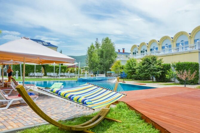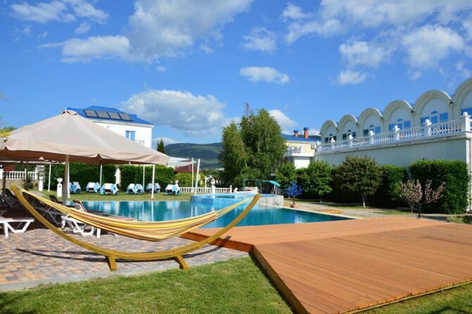 Комфортная гостиница с прекрасными условиями проживания. Есть открытый бассейн, сауна, место для барбекю, имеется парковка. Номера светлые уютные с необходимыми и разными дополнительными удобствами. Гостиничный ресторан ежедневно предлагает завтрак, также здесь имеется бар, а ещё можно заказать вкусные европейские блюда. Гостиница располагает собственным садом и конференц-залом, где можно провести деловую встречу или переговоры.