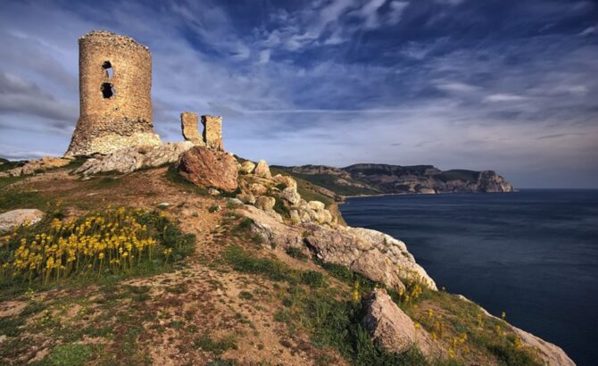 Самый известный символ Балаклавы находится на горе Крепостная, был построен генуэзцами. Крепость была охранно-стратегическим объектом, защищала ближайшие поселения и важные пути морской торговли. За свою историю крепость много раз получала серьёзные разрушения. Поэтому сегодня от величия неприступной крепости Чембало остались только руины. Эти камни древности хранят память о былом, вызывая интерес историков и археологов, а также обычных туристов. От фрагментов крепостных стен на крутом обрыве просто дух захватывает, а ещё с обрыва прекрасный вид на бухту и горы. А полуразрушенные башни крепости Чембало, возвышающиеся над городом и видимые отовсюду, придают местности неповторимый образ.