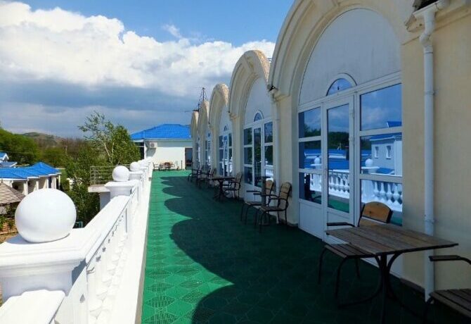Небольшой, но современный уютный отель с отличным местом расположения. Набережная, транспортные остановки находятся совсем рядом. С балконов отеля прекрасный вид на бухту и крепости Чембало, расположенные на горе. Комнаты с хорошей удобной мебелью, телевизором, есть всё необходимое для комфортного проживания. В отеле имеется ресторан и бар, где можно покушать блюда из черноморской рыбы и попробовать другие морские деликатесы. Рядом с отелем находится кафетерий. Хороший сервис и уютный интерьер делают отдых в отеле приятным и комфортным.