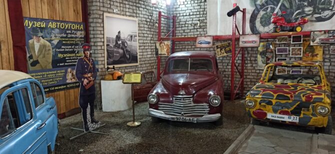 Этот уникальный музей назван в честь главного героя Юрия Деточкина из фильма «Берегись автомобиля». Этот персонаж прославился тем, что занимался угонами автомобилей. Интересен музей тем, что в залах посетители найдут большое количество экспонатов (их более 700), связанных с угоном транспортных средств. В музее работают два выставочных зала. Первый демонстрирует, как и с помощью чего злоумышленники похищают автомобили, вскрывают замки, отключают сигнализацию. Второй рассказывает, как защитить транспорт от угона. Экскурсоводы покажут всевозможные отмычки: от самых простых примитивных вариантов до современных с программным обеспечением. Капканы, рыболовные крючки, скрытые камеры, красящие вещества, дистанционное управление представлены как защитные средства от угона. Также здесь есть поддельные номера, запчасти с угнанных авто. Значительную их часть музей получил в дар от работников ГАИ. Экспонаты в музей привозят со всего мира, так как Барнаульский музей единственный в своем роде. Он вошел в шестерку самых необычных музеев России, чем приятно удивил работников. Недавно здесь появилась точная копия «Волги» с фильма «Берегись автомобиля».