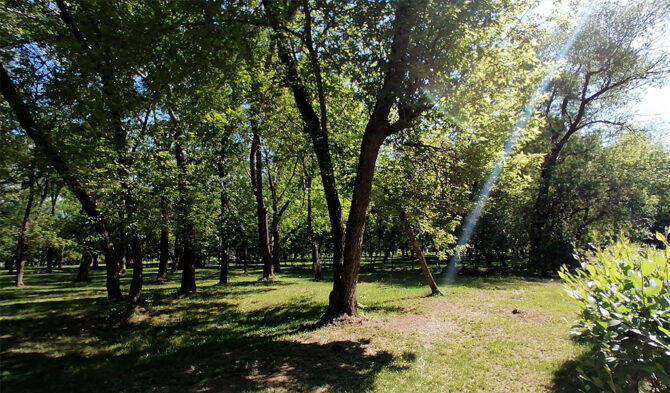 Это один из самых известных парков культуры и отдыха в Барнауле. Расположен он в Октябрьском районе города. Практически со всех сторон он ограничен частным сектором и только с юга примыкает к ликероводочному заводу, а с запада – к Комсомольскому проспекту. Примерно 80% парка – это зеленая зона, здесь приятно гулять в знойные летние дни, так как многие дорожки скрываются в тенистых кронах деревьев. В парке растет ель, рябина, сосна, боярышник, черемуха, калина. «Изумрудный» парк занимает площадь 40 гектаров.