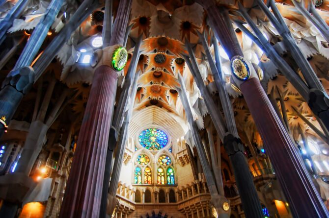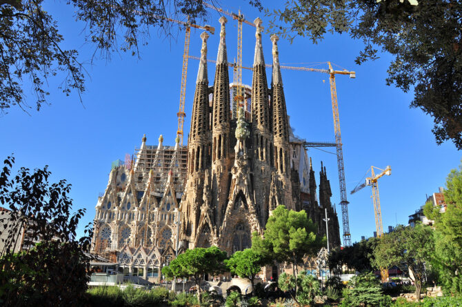 Собор Святого Семейства – самая узнаваемая достопримечательность Барселоны. Этот храм строится уже более 130 лет, а началось его возведение в конце 19 в. Монументальная конструкция с необычной и даже космической архитектурой полностью возводится на средства посетителей, которые для входа в храм должны приобрести билет в кассе.
