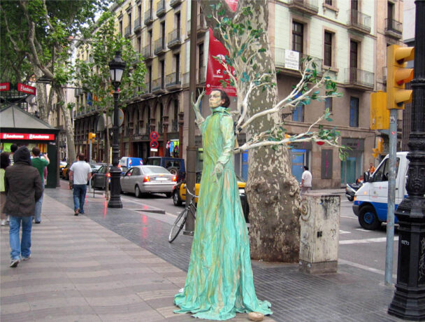 Начинается пешеходный бульвар от красивого чугунного фонтана с питьевой водой. Здесь можно увидеть туристов, наливающих воду в пластиковые стаканчики – считается, если выпить ее, то обязательно снова вернешься в Барселону.