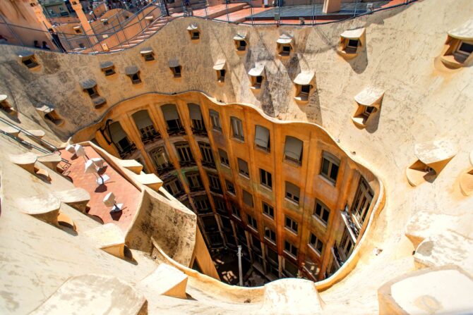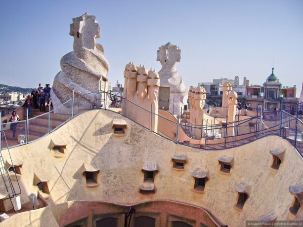 Дом Мила и правда отличается от уютных фасадов, стоящих рядом на одной с ним улицей. У барселонцев он ассоциировался с каменоломнями, а в народе это здание так и называли – «педрера». Но Гауди не только создал оригинальное здание, но и вложил все свои архитекторские умения в прокладку вентиляционных коммуникаций – даже в настоящие дни дом не требует дополнительного кондиционирования.