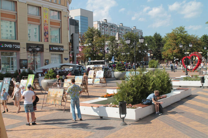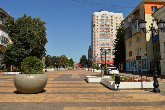 В 2016 году одну из центральных улиц полностью реконструировали, превратив ее в пешеходно-прогулочную зону. Она протянулась от парка культуры и отдыха им. Ленина до Свято-Троицкого бульвара. Было полностью заменено покрытие, появились плиточные дорожки, клумбы, скамейки, красивые фонари и вечерняя подсветка арт-объектов. Это место прозвали Белгородским Арбатом не случайно. Здесь не только собираются уличные музыканты и художники, но и проводятся крупные творческие фестивали. В 2019 году появилась световая аллея, которая стала центром притяжения любителей ночных прогулок. Из достопримечательностей можно отметить трехэтажный универмаг, построенный в лучших традициях сталинского периода. Архитектура улицы довольно разношерстная: первые двухэтажки соседствуют с хрущевками и современными железобетонными высотками. Рядом с универмагом установлена скульптура в виде сердца. Это своеобразный вход на территорию Белгородского Арбата.