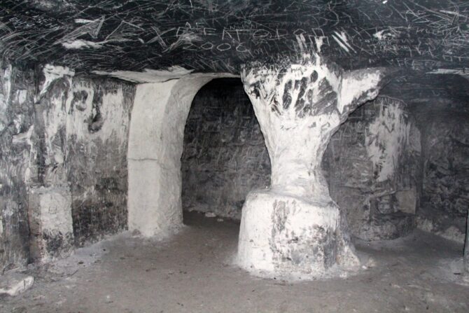 Посещение села Шмарное станет завершающим пунктом самостоятельной экскурсии. Здесь находится заброшенный подземный христианский храм, о котором ходят легенды. Эзотерики считают его местом силы, поэтому сюда часто приходят, чтобы получить заряд энергии и найти ответы на интересующие вопросы. Местный священник следит за порядком и призывает туристов не мусорить и не портить меловые стены пещеры. Для православных она является памятным местом, где в годы нашествия татаро-монгольских войск хана Батыя скрывались мирные жители. Благодаря 10-метровой толщине пещерных стен и крайне неудобному входу они смогли спастись от смерти и рабства. Никто не может точно сказать, когда сюда пришли первые монахи. Одна из легенд гласит, что в пещеру уходили отшельники-аскеты, готовящие свои тела для святых мощей. Они морили себя голодом, усыхали практически до костей, зато их тела после смерти оставались нетленными. Правда это или нет, никто не сможет сказать. Перед пещерой установлены столы со скамейками для трапезы, есть стратегический запас дров, а также масляная лампа, если кто-то забудет фонарик.