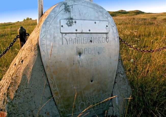 Село Крапивное имеет свою историческую достопримечательность – древнее городище на высоком правом берегу реки Корень. До сих пор никто не может точно сказать, когда и кем было основано поселение. Археологи раскопали несколько культурных слоев, самой нижней из которых является лесостепная культура скифского периода. Считается, что скифы жили здесь, начиная с 5 века до нашей эры. В 9-10 столетия нашего времени сюда пришли северяне. Они стали родоначальниками Древнерусского государства. В русских летописях городище не упоминается, зато о нем писал древний арабский географ Идриси. В его трактатах поселение называлось Бусарой и было крупным административным, торговым и военным центром. Оказывается, еще тысячу лет назад река Корень была судоходной и сюда заходили торговые корабли на стоянку. Сегодня здесь можно прогуляться по огромным земляным валам, посетить места, где ранее стояли детинец, межградья, 6 открытых посадов и окольный город.