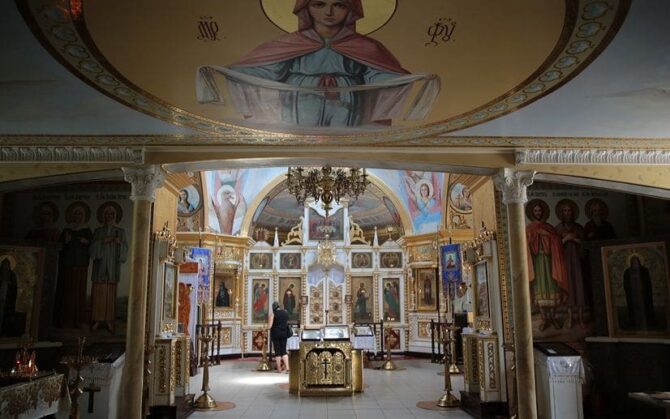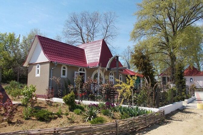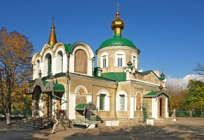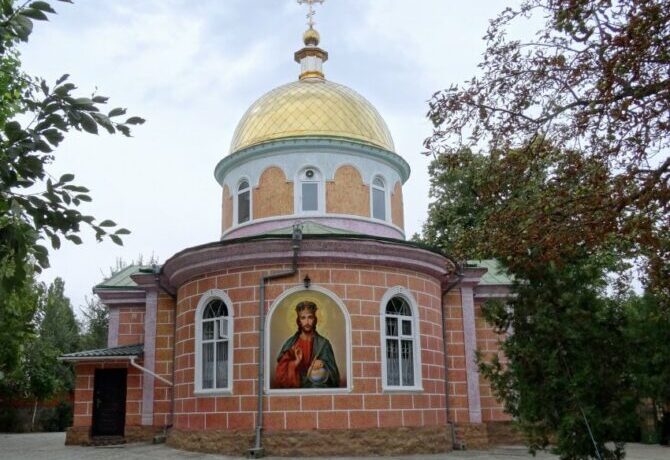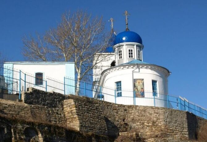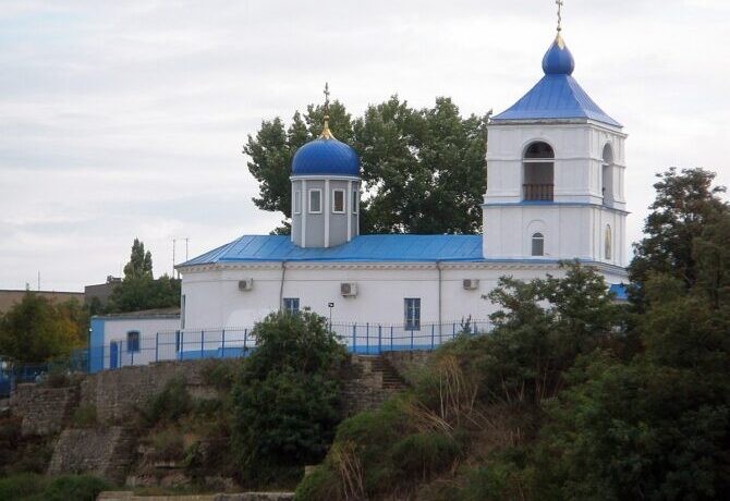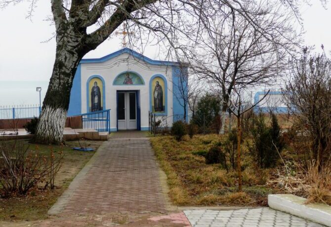 Рядом стоит часовня св. Иоанна Сучавского. Церковный двор обрывается вниз береговым крутым склоном, отсюда открывается вид лимана. Сбоку внизу — причал, где у ржавого остова корабля пришвартован прогулочный теплоходик.