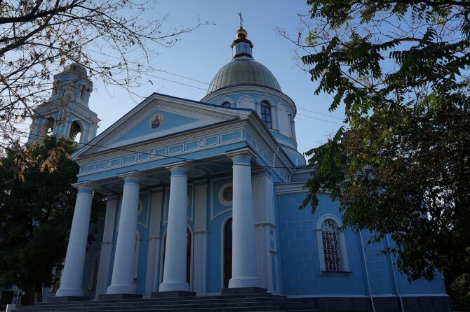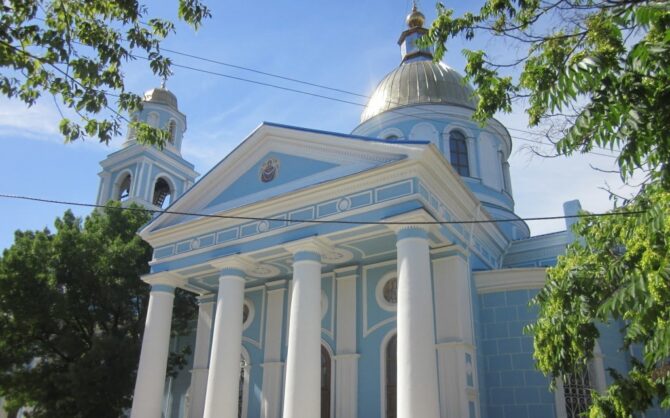 Ближе к центру, на холме, — Вознесенский собор. Россияне вызывающе построили его на месте старого турецкого кладбища в первые годы после присоединения Бессарабии. Храм украсили в духе классицизма, возвели 40-метровую колокольню.