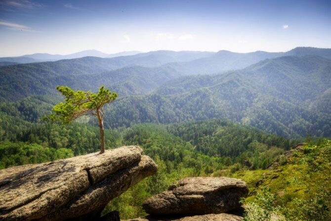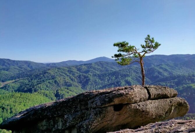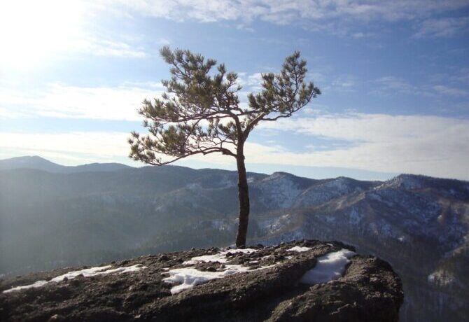 Если встать спиной к тропинке, которая привела к «водопаду», то справа можно увидеть дорожку. Она приведет к Одинокой сосне – месту легендарному и загадочному. Издалека дерево выглядит, как будто его вырастили в японской традиции бонсай. Оно растет на скальном выступе, где по умолчанию не должно быть земли. Каким образом закрепились корни дерева, остается загадкой. Вековая сосна окружена сказами и легендами. Возле нее принято загадывать желания, связанные с романтическими привязанностями. Сосну в народе называют Деревом любви. К достопримечательности ведут несколько терренкуров, в частности, от санатория «Катунь». Добраться до нее также можно по горнолыжному спуску от санатория «Россия».