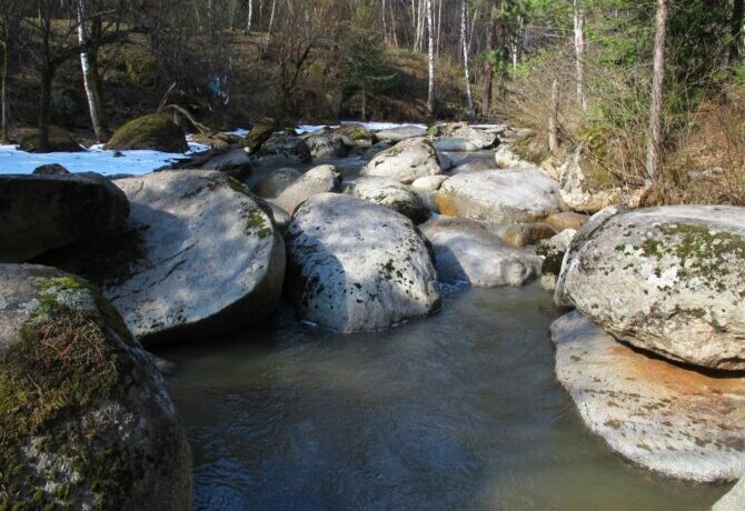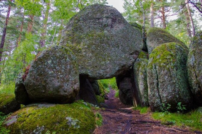 Природная достопримечательность, напоминающая водопад из камней, находится на склоне горы Круглой. К ней ведет указатель «Тропа в обход». Через пару минут перед глазами откроется удивительное зрелище. Застывшие выступы создают картинку застывшего водопада. Это удивительное зрелище, одно из многих, которое дарят путешественникам Алтайские горы. Возле этого чуда природы есть валуны, на которые можно присесть и полюбоваться красотами. на скале есть безопасные уступы, на которые взбираются смелые любители фотосессий.