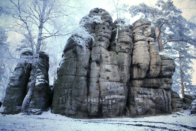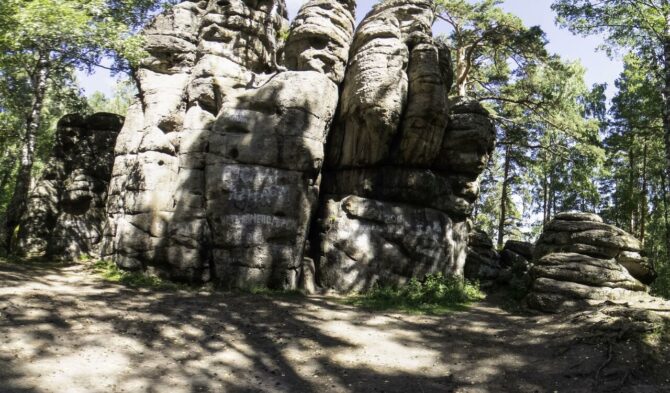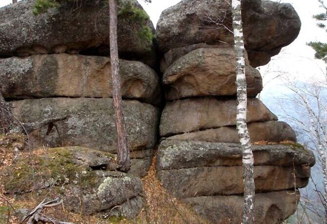 В народе говорят, что у Духа горы было много детей. Все они стали скалами. «Четыре брата» является одним из самых интересных горных образований. Понятно, что своей необычной формой скала обязана воде и ветру. Но так хочется поверить легенде, гласящей, что когда-то валуны были настоящими людьми. Древнее сказание повествует о пяти братьях, пришедших в эти края в поисках нового дома. Место им очень понравилось – целебная вода, термальные источники, леса, наполненные живительным воздухом и лекарственными травами. Решили братья единолично воспользоваться природными дарами, а заодно засыпать землей озеро, куда стекались ручьи с «живой водой». Младший брат воспротивился и тогда старшие задумали его убить. Рано утром они взяли копья и вознесли их над головой молодца. Но тут их постигла божья кара, четыре брата окаменели так, как и стояли – плечо к плечу. Младший открыл людям тайны оздоровительной силы местной природы, а ландшафт пополнился уникальной скалой. Дорога к достопримечательности начинается от санатория «Россия».