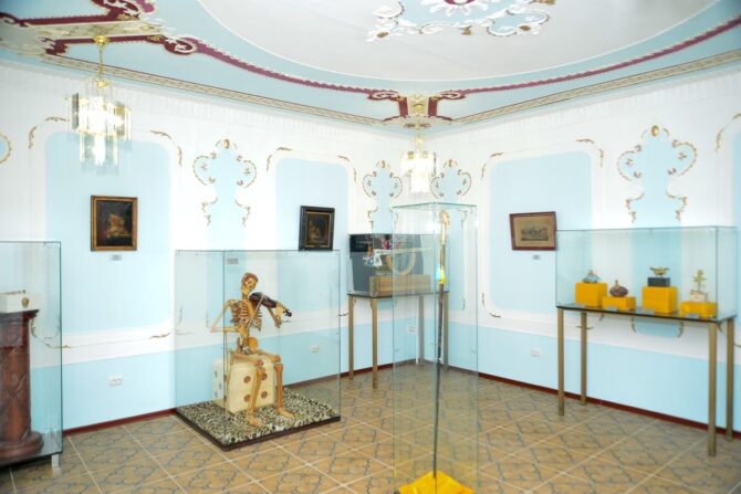 Еще один музей заслуживает особого внимания. Чтобы его посетить, нужно вернуться на улицу Славского. В доме № 9 расположена уникальная экспозиция изделий из золота и серебра. Это частная коллекция скульптора-ювелира Владимира Войчишина. Работы мастера дополнены художественными произведениями 17-18 веков, которые владелец собирал в течение всей жизни. Его творчество всегда было востребованным, поэтому многие произведения находятся в частных коллекциях, а самое известное из них — «Скрипка Рошильда» — в экспозиции Эрмитажа. При открытии музея автор пожелал, чтобы его посещение было бесплатным.
