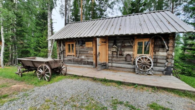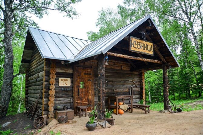 В комплекс входят еще шесть объектов. Дом Хлеба создан по образу и подобию пекарни 19-го века. Кроме характерной обстановки, в нем собраны старинные рецепты выпечки хлебобулочных изделий. Локомобиль появился в экспозиции случайно. Его нашли в одном отдаленном горноалтайском селении, выкупили у сельчан, привезли, почистили, покрасили, установили. Это транспортное средство использовалось для молотилок, мельниц, веялок в качестве привода. В кузнице все по-настоящему. Ее основала Анна Билецкая и постоянно наведывается сюда, чтобы создать очередной кованный шедевр. В Доме Знахарки собраны образцы всех лекарственных трав Алтая. Хранительница знает заговоры и другие способы лечения людских недугов. Амбар и винокурня не нуждаются в особом представлении. Сюда интересно зайти и увидеть процесс производства прадеда водки – хлебного вина. Вход платный.