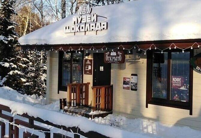 Такие мастера, как Гордиенко и Войчишин, создают отдельную историю достопримечательностей города. Музей шоколада – это еще одно творение Владимира Войчишина. Экспозиция шоколадных фигурок находится в отдельно стоящем небольшом домике на окраине леса. Сегодня можно смело назвать его первым музеем-магазином, действующим на территории строящегося курорта «Белокуриха-2». Чтобы проехать к нему, нужно подняться по серпантину до самого верха, а потом свернуть на грунтовую дорогу. В 400-х метрах от серпантина в окружении сосен и елок находится скромных домик, построенный из склеенного бруса.