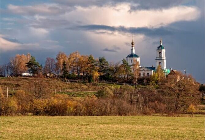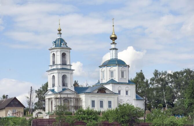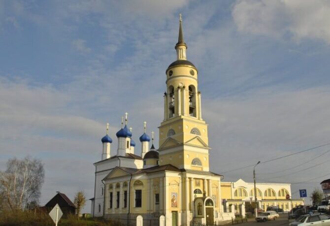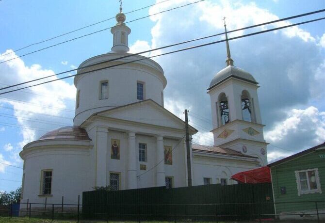 На старой дороге, ведущей в Панфутьев монастырь, находится Церковь Пресвятой Богородицы. Она стоит на холме над Протвой и видна издалека. Одноглавый храм в стиле позднего барокко был построен еще в 1708 году. Сегодня его используют в качестве летнего храма, так как в нем нет отопления. Чуть позже были построены теплая трапезная и трехъярусная колокольня. В храме обустроены три престола. Один в честь Рождества Пресвятой Богородицы находится в летней части, во имя Иоанна Богослова – с южной стороны в трапезной, в честь святого Василия Великого – в северной части храма. После революции прихожане выступили против закрытия церкви. До войны богослужения проводились не регулярно, после 1945 года службы велись без вынужденных перерывов. Храм знаменит тем, что здесь 20 августа 1880 года венчался Константин Циолковский. Его супругой стала дочь его квартирного хозяина Варвара Евграфовна Соколова. Возле церкви находится старинный погост, на территории которого сохранились памятники и надгробия 18-19 веков.