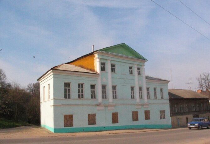 В городе много мест, связанных с именем Константина Циолковского. Одно из них – это купеческий дом Богомолова, в котором проживал друг ученого Е.С. Еремеев. Мимо него пройдет путь дальнейшего экскурсионного маршрута. Визуальный ориентир – Собор Благовещения Пресвятой Богородица. Нужно продвигаться в его сторону, по дороге рассматривая местные архитектурно-исторические достопримечательности. Богомоловское здание стало одно из первых в Боровске, построенным из камня. Когда был снесен соседний дом и постройка потеряла опору, оказалось, что каменное строение было возведено без фундамента. По стенам пошли трещины, появилась потребность в срочных восстановительных работах. Подрядчики сотворили чудо – строительная компания предотвратила разрушение здания, в результате были сохранены пластина со старообрядческим восьмиконечным крестом, элементы водостока, металлические кольца для коновязи. До ремонта на одной из стен находилось изображение математика П.Л. Чебышева. Во время ремонта фасада его закрасили.