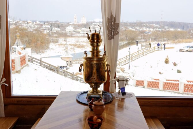 Рядом с храмом Покрова Пресвятой Богородицы открыта монастырская чайная. Традиционные церковные и русские блюда здесь готовят в настоящей дровяной печи. В меню представлены борщи, уха, супы, котлеты, пельмени, выпечка. Здесь заваривают чаи из ароматных и полезных трав. Здесь отмечают семейные и народные праздники. Туристы любят обедать или ужинать за просторными столами в светлой трапезной. Еда простая, но очень доступная по ценам. Не стоит упускать возможность хорошо поесть перед осмотром еще двух важных достопримечательностей, расположенных поблизости.