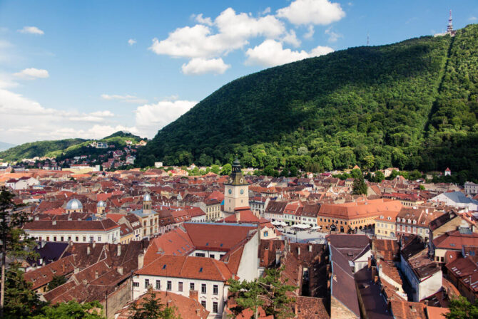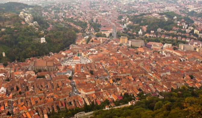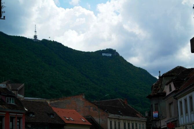 С одной стороны холма вы можете увидеть классический европейский старый город, а на другой стороне вы можете увидеть коммунистическое влияние в Брашове.